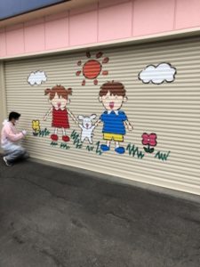 ぴっころがオープン当初からの目標であった、社長デザインのイラストがシャッターに描かれました😍とっても喜ばしい事ですね~‼
