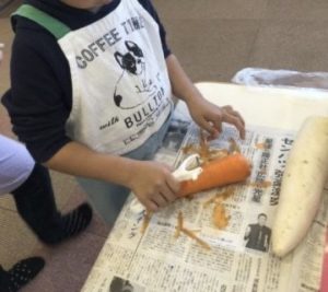 ぴっころ16今月のクッキングは、豚汁とマカロニサラダとおにぎりを作りました🍙🥢