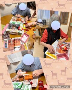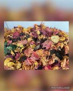 落葉を使って作品作り中👍何ができるかはお楽しみです💗