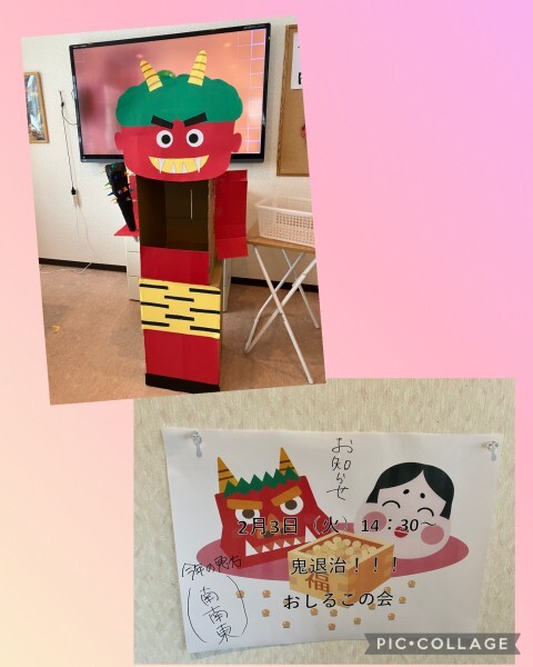午後に手作りの鬼へ球を投げて鬼退治😁💪